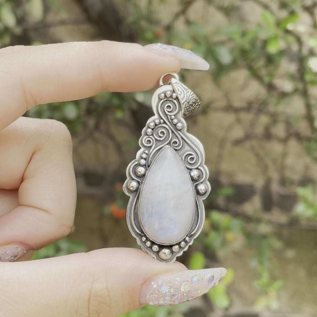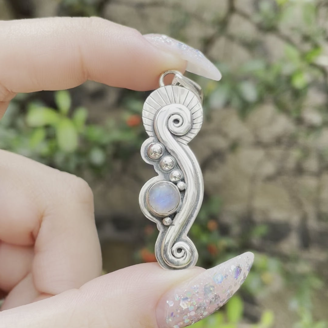 Dije de plata 925 con piedra luna arcoíris