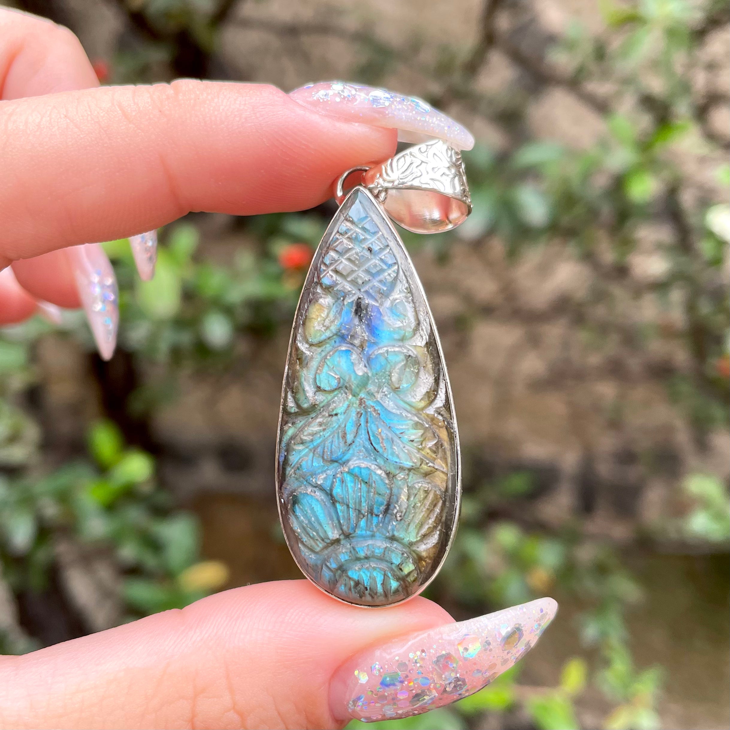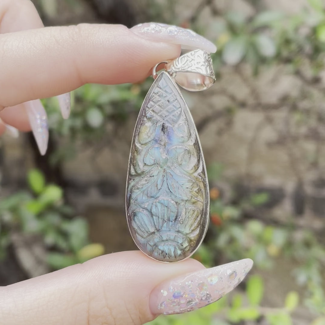 Dije de plata 925 con labradorita tallada a mano