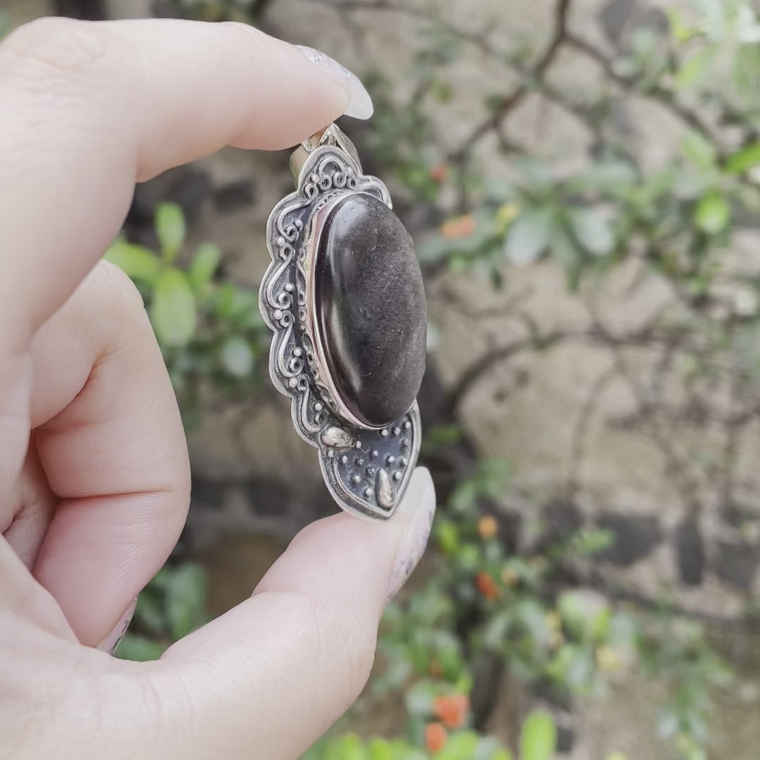 Dije de plata 925 con obsidiana plateada